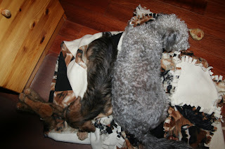 Beware of lots of puppy pics!Aww, their version of 'spooning' - so sweet to see them sleeping together - next to my desk!